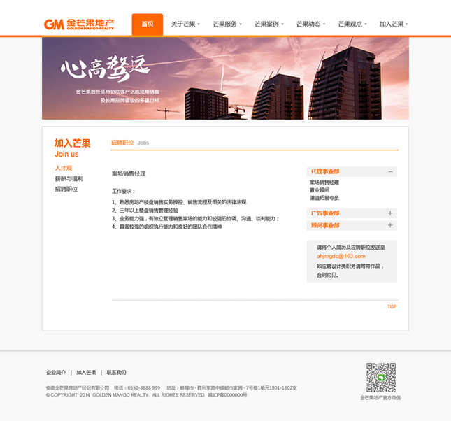 金芒果基于對中國房地產(chǎn)的執(zhí)著追求,憑借對市場營銷的激情創(chuàng)新,以完全經(jīng)過市場檢驗(yàn)的專家團(tuán)隊(duì)和對市場的敏銳天賦,大膽構(gòu)思、執(zhí)著實(shí)踐、激情專注、科學(xué)分析,贏得了業(yè)主的廣泛認(rèn)同和支持,并以優(yōu)異業(yè)績和服務(wù)質(zhì)量,被客戶譽(yù)為具實(shí)效、富激情、科學(xué)嚴(yán)謹(jǐn)?shù)膶I(yè)房地產(chǎn)服務(wù)商。