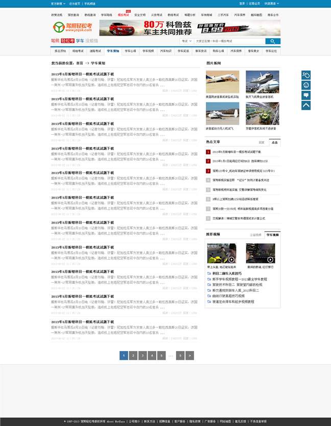 “駕照輕松考”可隨時為學員提供最新的學車動態(tài)、各駕校的價格、服務,提供網(wǎng)上模擬考試,為學員提供全方面的服務,讓學員能以最優(yōu)惠的價格選擇真正適合自己的駕校。本網(wǎng)站本著“服務駕校、服務學員、追求卓越、共同發(fā)展”的宗旨,通過優(yōu)質(zhì)、方便、快捷、專業(yè)的服務來實現(xiàn)真正的網(wǎng)上報名,同時本網(wǎng)還提供學車方面的各種知識,具體包括“學車動態(tài)”、“學車指南”、“駕駛常識”、“模擬考試”、“新車報價”等欄目,是學員學車的第一站。